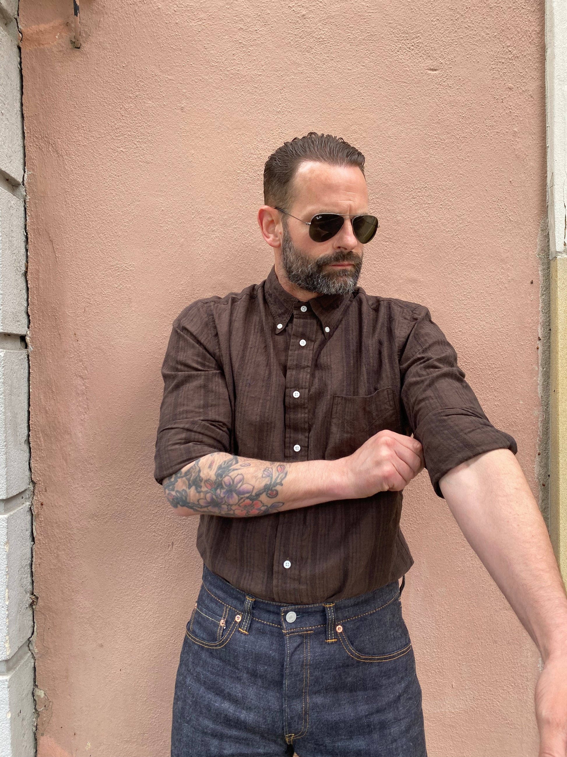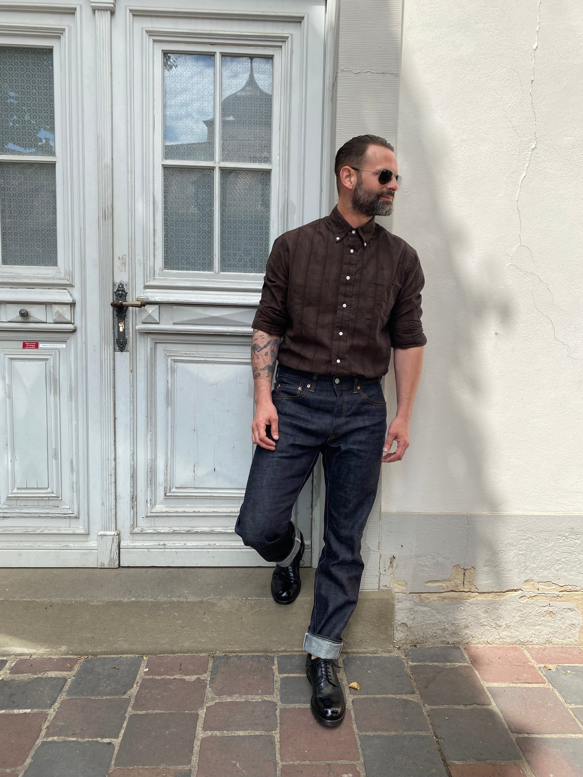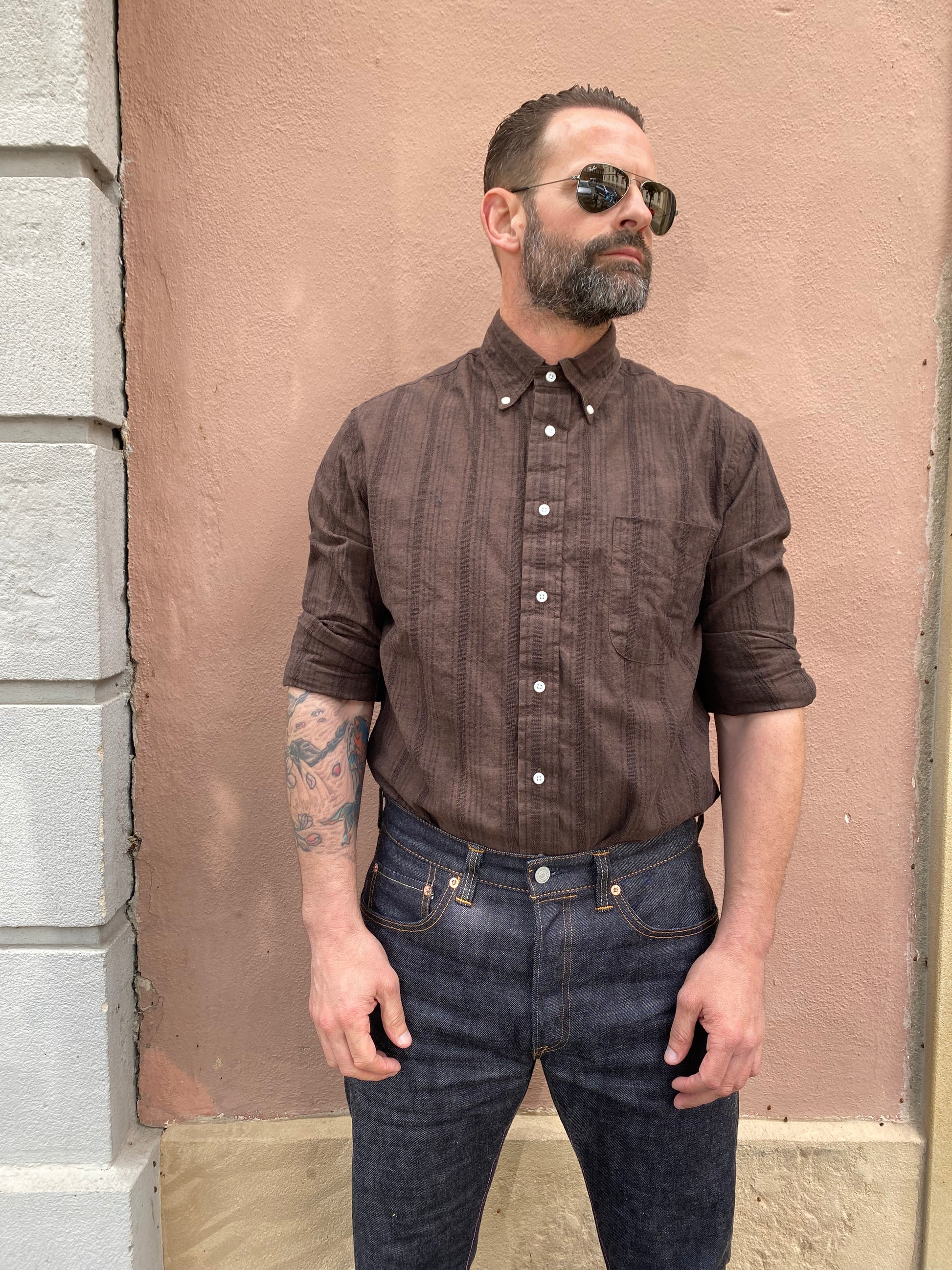GITMAN - Hemd Cotton/Linen Yarn-Dyed Dobby | brown