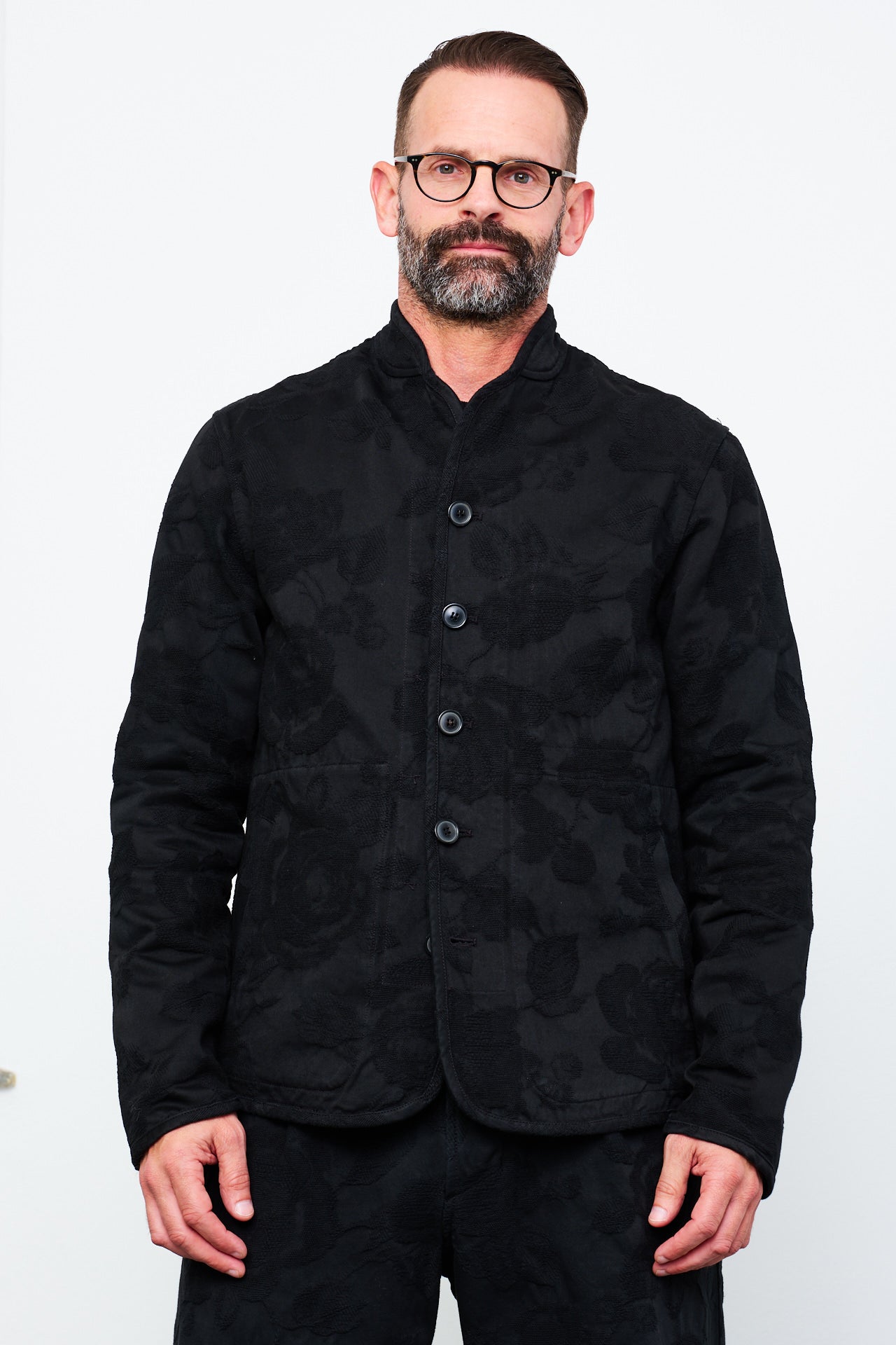 This very special fabric is an Italian cotton jacquard with a self-coloured floral motif picked out in different textures.